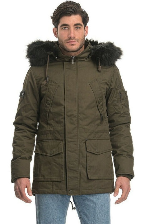 Biston Ανδρικό Μπουφάν Parka με Μαύρη Γούνα